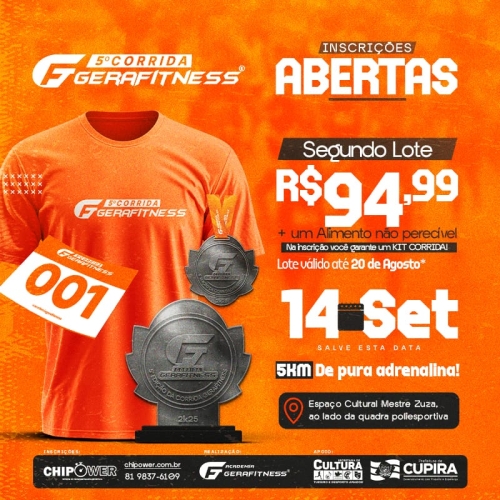 A 5ª Corrida GERAFITNESS é um evento em incentivo uma prática esportiva, que visa proporcionar um estilo de vida saudável.