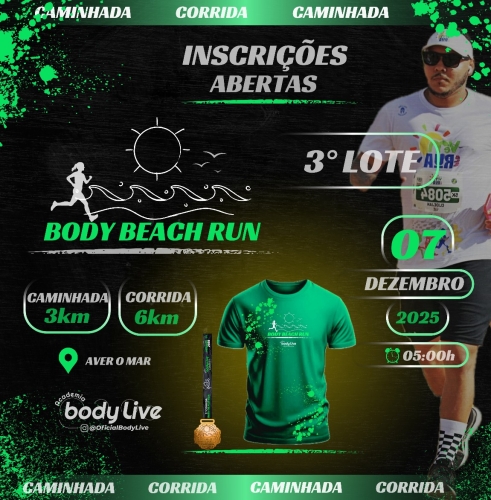 No dia 07 de dezembro, Aver o Mar – PE será palco da Corrida Body Beach Run, reunindo atletas, corredores amadores e amantes do esporte em um percurso inesquecível à beira-mar.