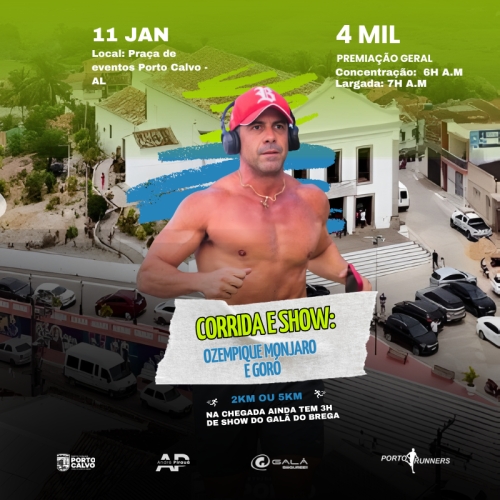 Prepare o tênis, o sorriso e a disposição, porque no dia 11 de janeiro de 2026, a cidade de Porto Calvo vai ferver com a CORRIDA DE VERÃO: Ozempic, Mounjaro e Goró! 🔥💃