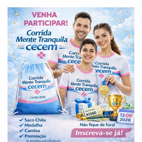 A 1ª Corrida Mente Tranquila CECEM está chegando para promover saúde, bem-estar e qualidade de vida!